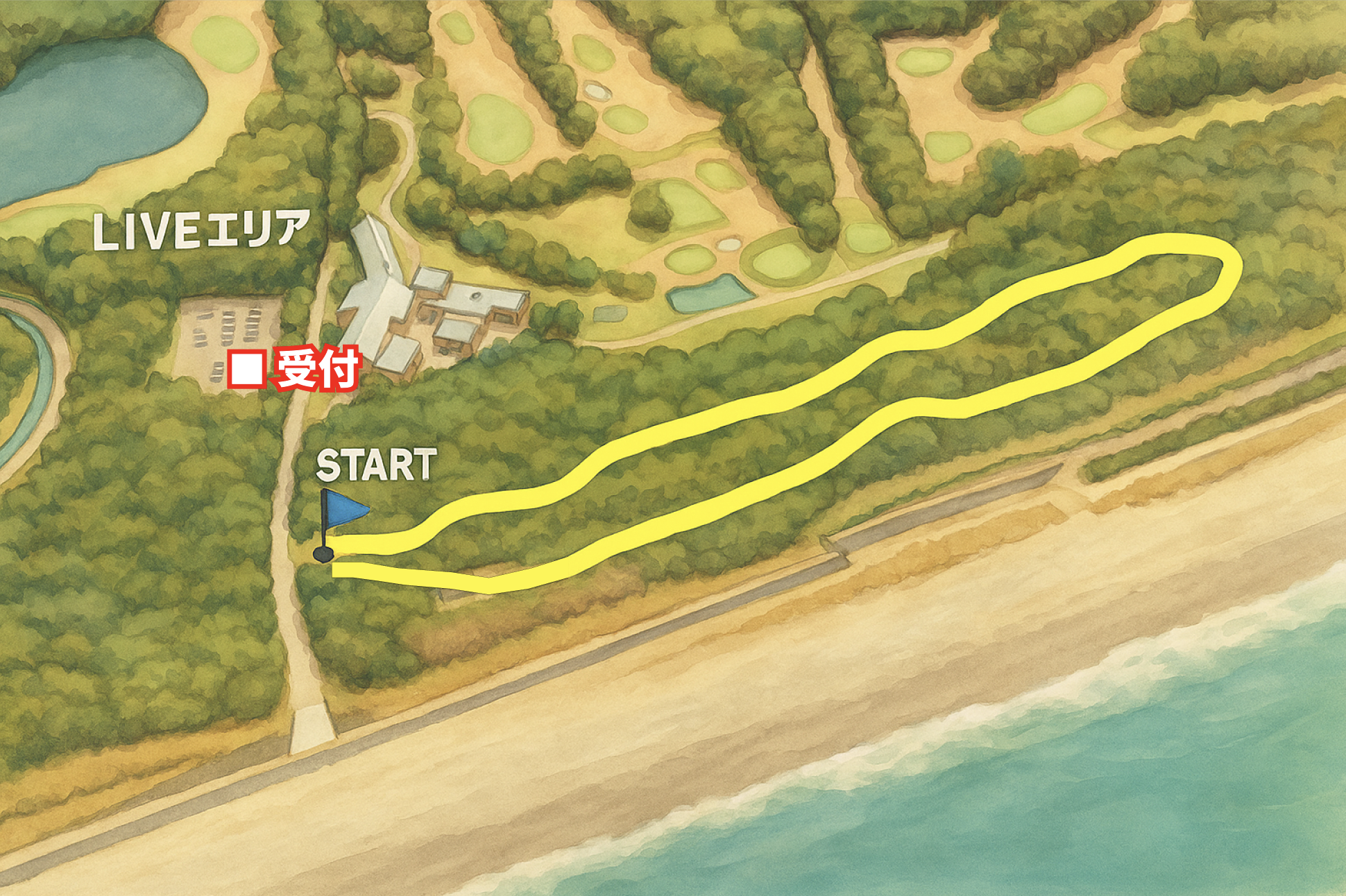舞台は、海沿いに広がる全長1km(オフロード500m・オンロード500m)の特設コース。変化に富んだ地形を、ヤマハの次世代スポーツ電動アシスト付き自転車で駆け抜けることができます。